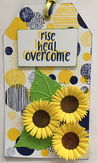 I didn't know what to put on as as wording for the tag - there really are no words to describe the plight of the Ukranians. I debated adding 'Slava Ukraini' which means glory to Ukraine but then remembered I had a stamp (coincidentally part of a sunflower stamp set) which I felt was appropriate. I stamped it in the same blue and yellow to give a shadow effect and mounted it on foam pads. Some yellow and blue ribbon finished the tag.